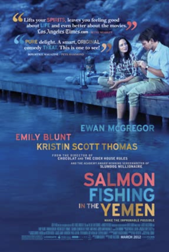 Salmon Fishing in the Yemen (Lasse Hallström, 2011) wr. Simon Beaufoy from epistolary novel by Paul Torday; Ewan McGregor, Emily Blunt, Kristin Scott Thomas, Amr Waked; romcom